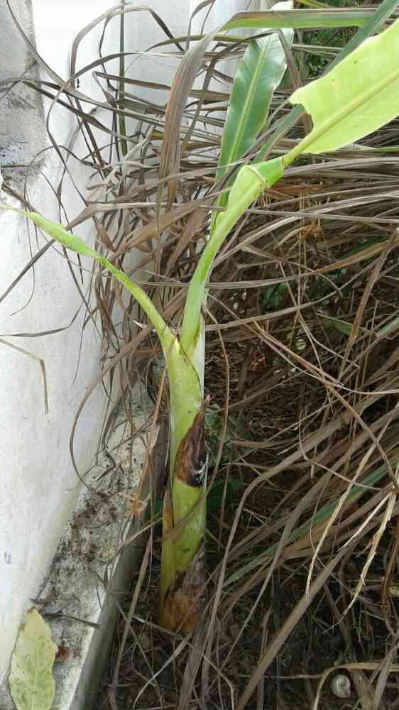 あれ?お隣さんのバナナが塀を潜ってうちに生えとるわ。もうちょっと大きくなったら分離するか。