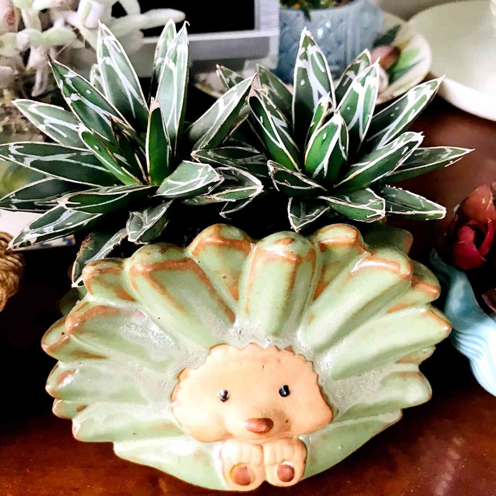 ハリネズミさんの鉢に『アガベ』がよく似合いますね✨🦔✨