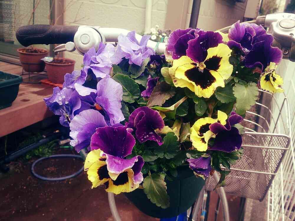自転車ガーデニングのよく咲くスミレが今満開です。