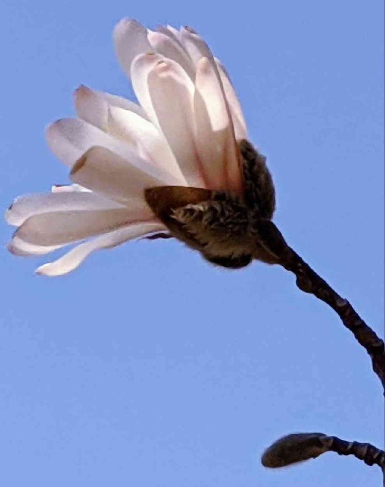 ピンク姫コブシ、木全体に随分ピンクが見えて来ました。…が既にヒヨドリ被害発生中…😭