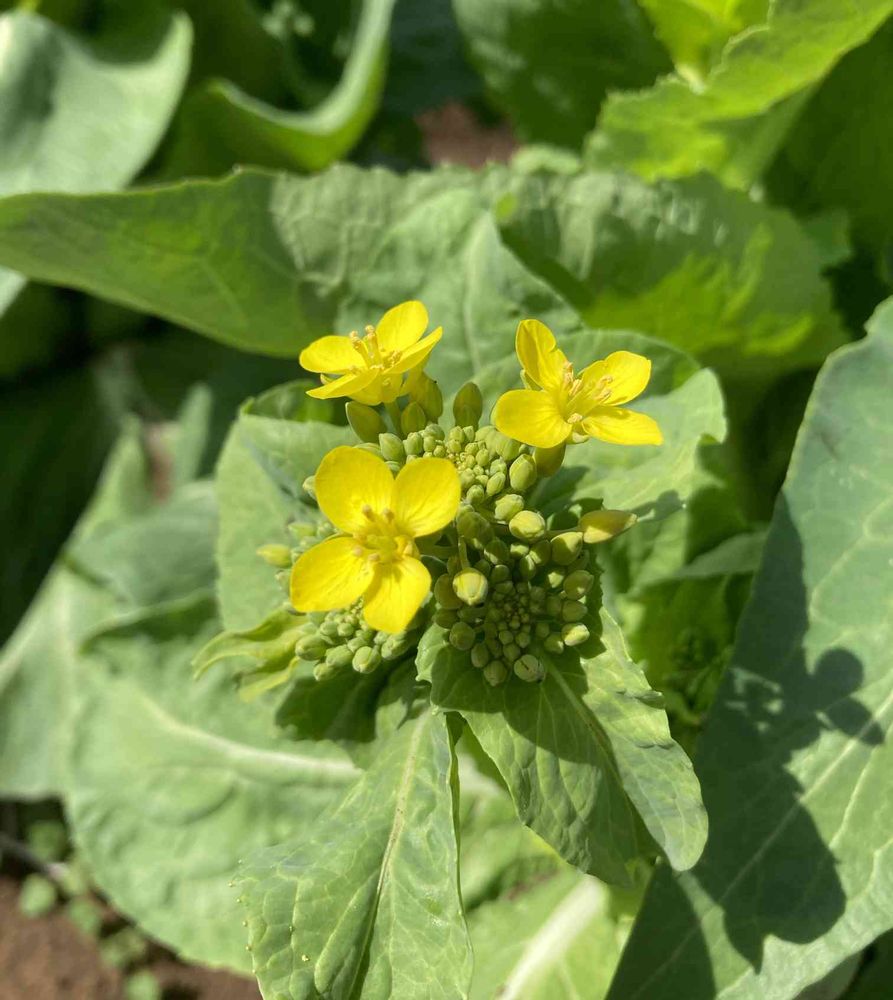 巻かない白菜を置いておいたら、冬を越してお花が咲いたそうです✨おひたしで頂きました☺️♪