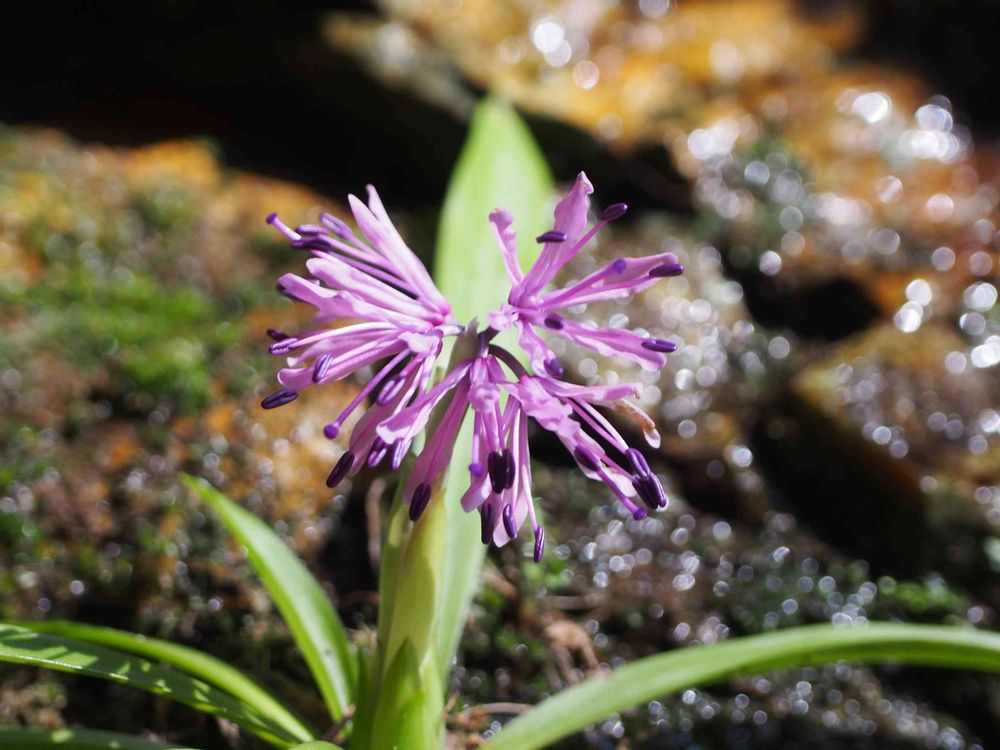 水の流れる岩場に居ます。ショウジョウバカマ(猩々袴)