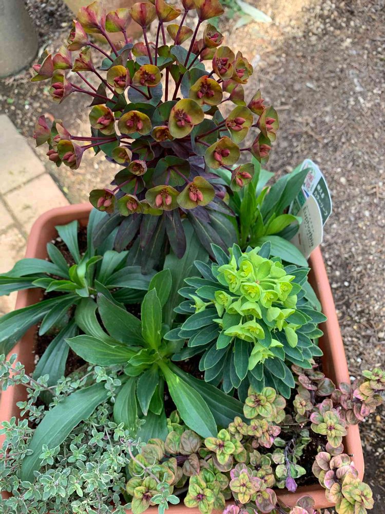 グリーンの寄せ植え、珍しくて素敵です✨✨ ユーフォルビアはお店で見たことないですがカッコいいですね!