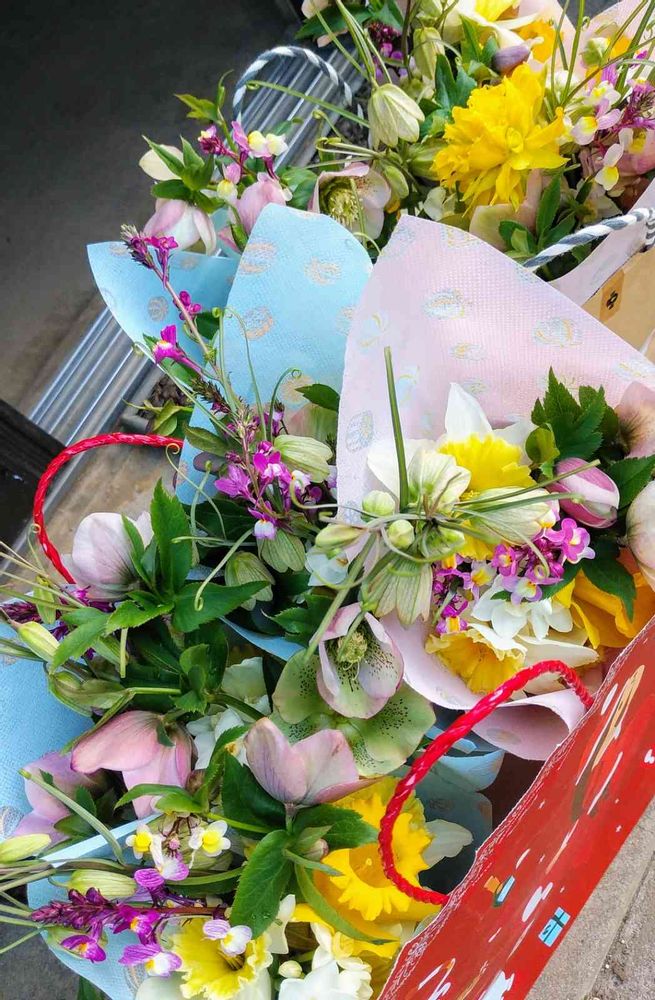卒業生に我が家の花で花束を作りました🌼