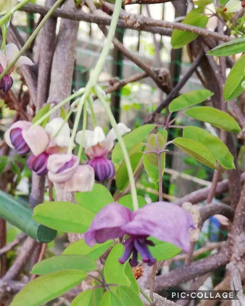 うちわ ゴヨウアケビと ミツバアケビが 混 植しているので 受粉はしなくてもいいんだけどね 気が付いた時に 筆で ちょこんちょこんやってるよ😊