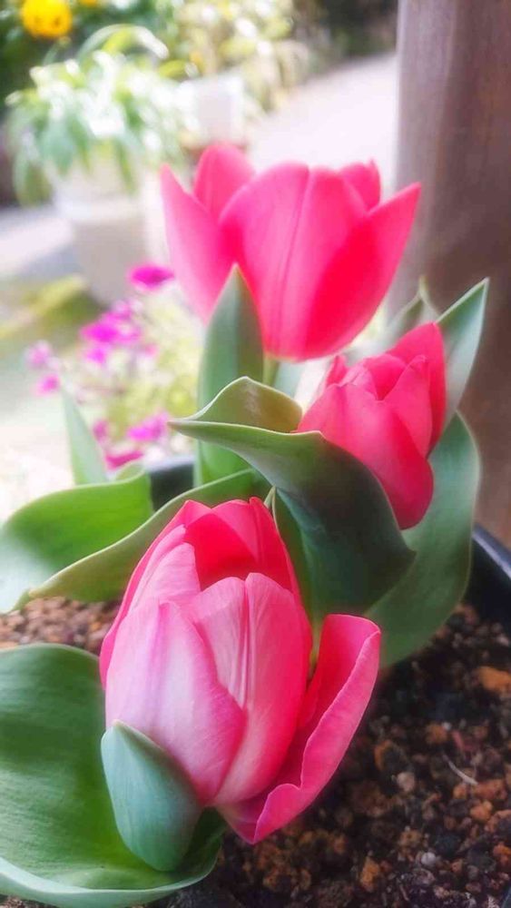 チューリップ🌷🌷🌷可愛いですね(๑˃̵ᴗ˂̵๑)✨お忙しそうですが、お花に癒されて心はほっこり出来ますね♬😘