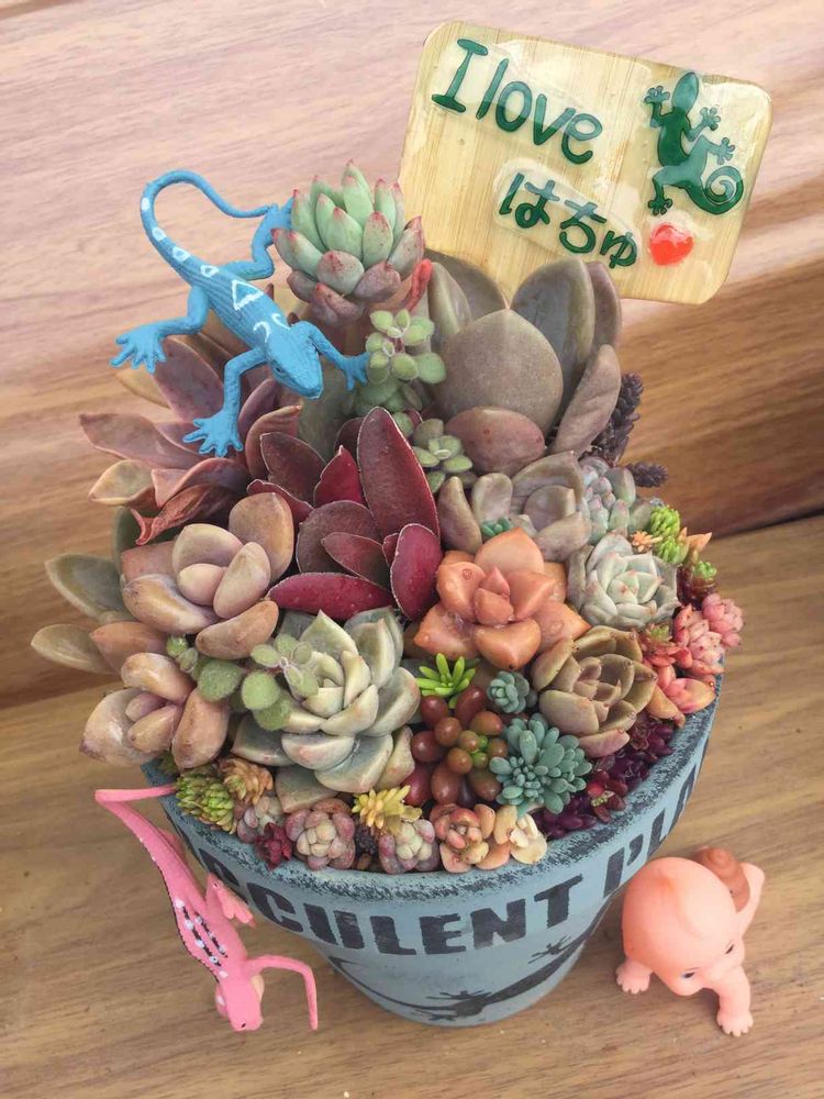 チルアウトさんのハチュ鉢にセダムや葉挿しっ子で❤️💛💖💚🧡