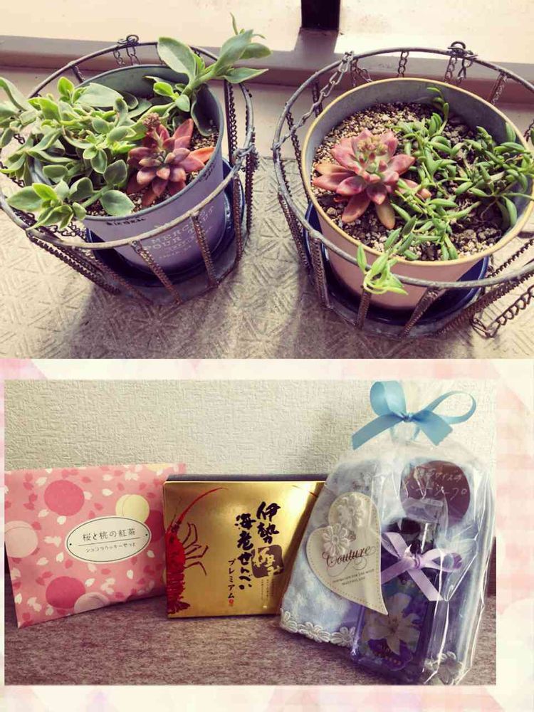 先日あんずちゃんから頂いた多肉ちゃんたちとお菓子、ハンドソープです😊