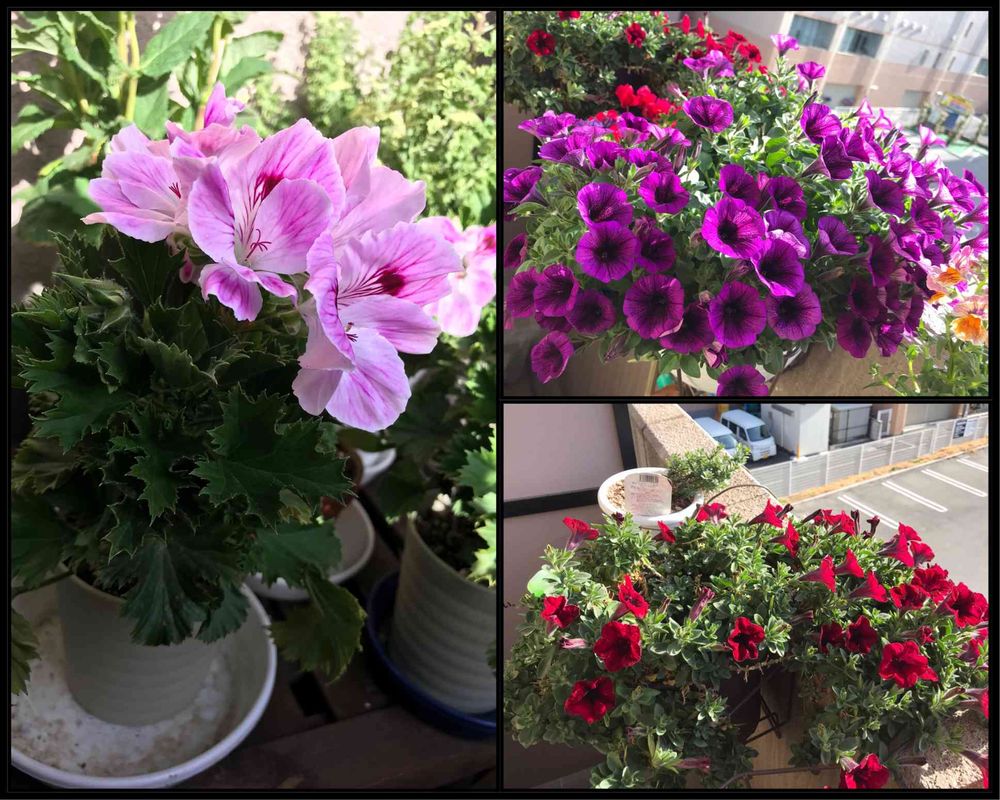 バルコニー/ベランダ,ペチュニア ギュギュ,サフィニア JAPANレッドの投稿画像