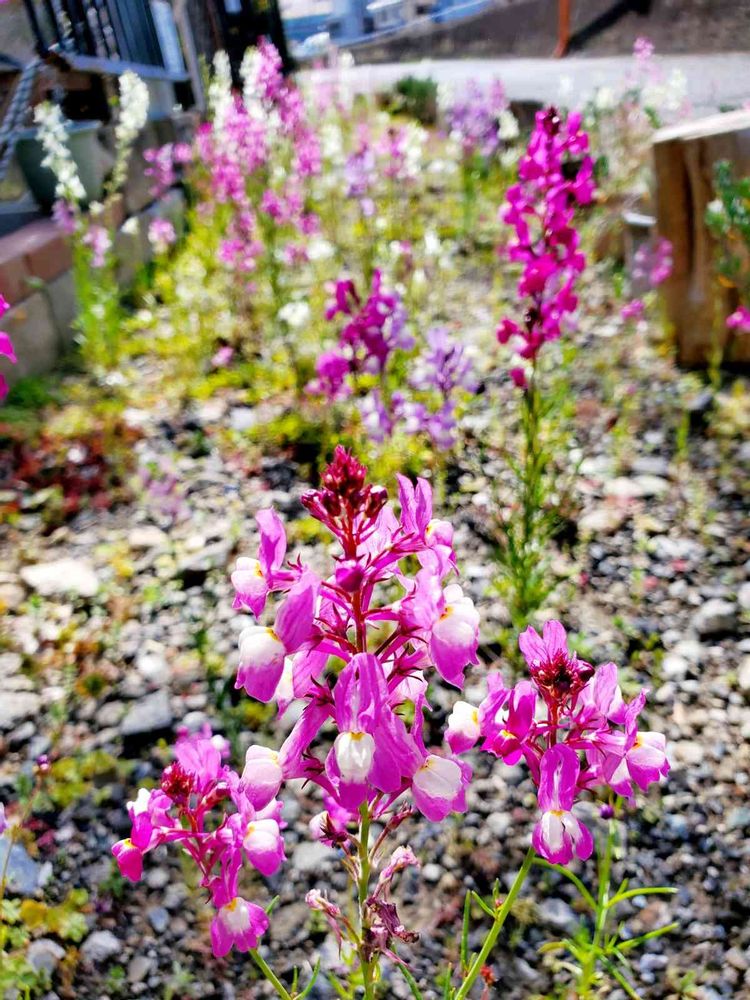 毎年この時期、砂利のよう地面からリナリアがたくさん咲く。