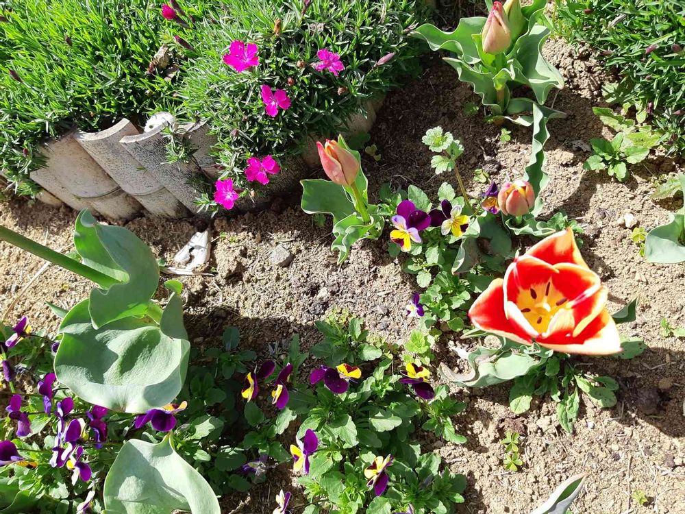こんにちは👋😃先程、お多福ガーデンにお花見に、ちょっと行って、後から写真みたら、三角形の、チューリップ🌷が、咲いてました‼️はじめて見ました😁🌷🌷。