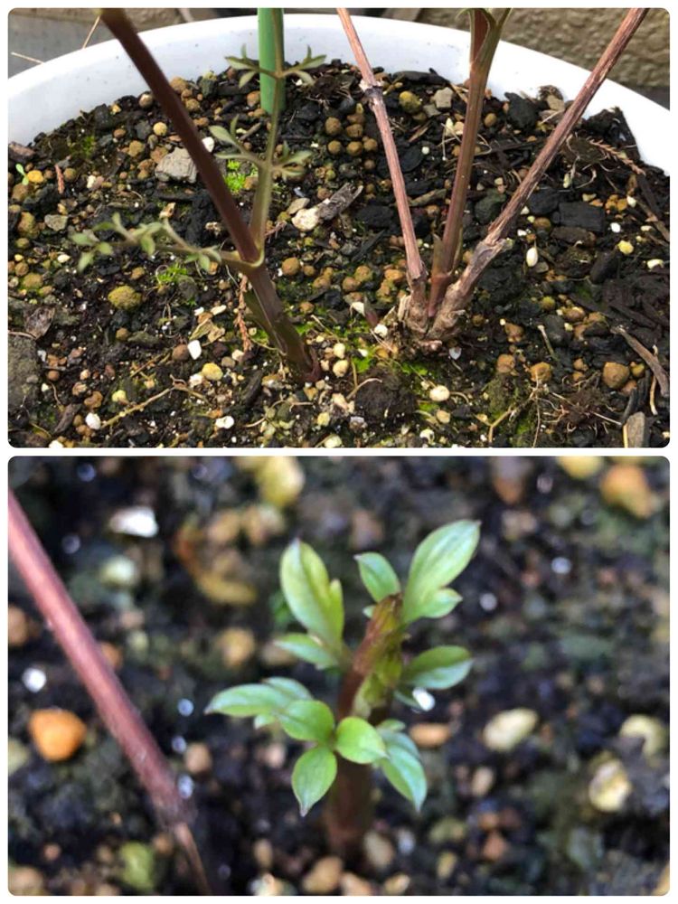 上のが去年迎えたもので、下のが挿木で芽吹いたもの