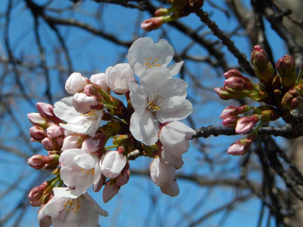 サクラの花は,少しだけ咲いています.天気がいいので久しぶりに疏水を散歩です.