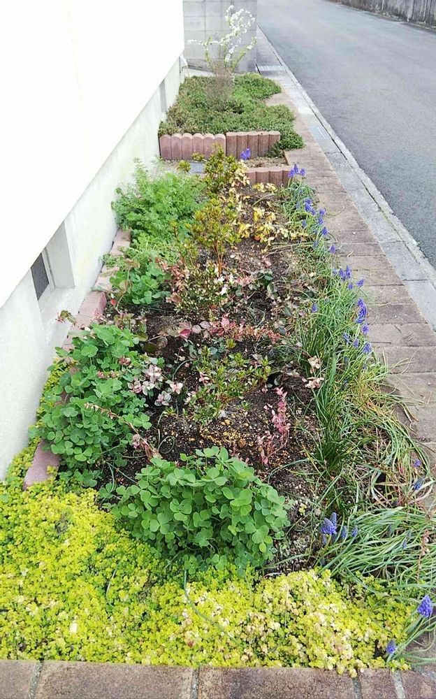 奥の花壇は、芝桜の新芽がモリモリになってきました😊