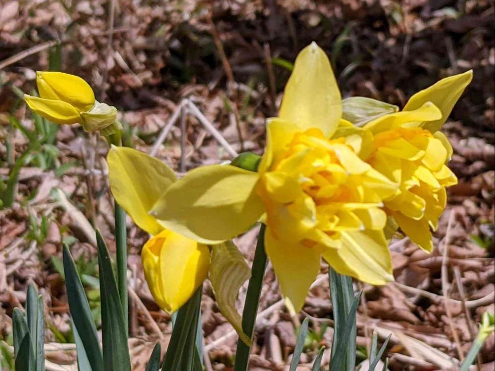 在来種かどうかは分かりませんが、10年以上前引っ越して来た時にはあった八重の水仙、年々増えて、初めての場所からも生えて来ます。