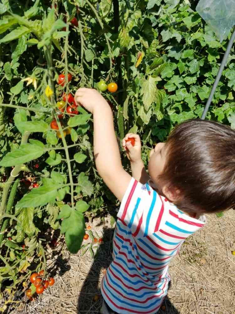 あらまぁ〜おチビさん一生懸命、🍅とっちゃってかわいいね!もけこさんはどこ???