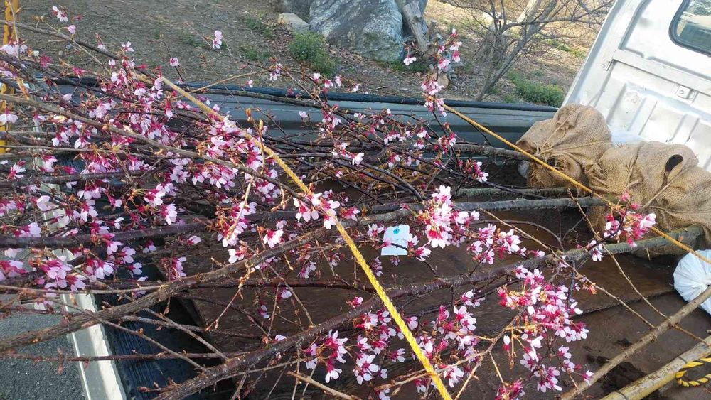 本日はオカメザクラ5本を入荷してきました。明日、貸家の庭を植栽工事する為の苗木です。