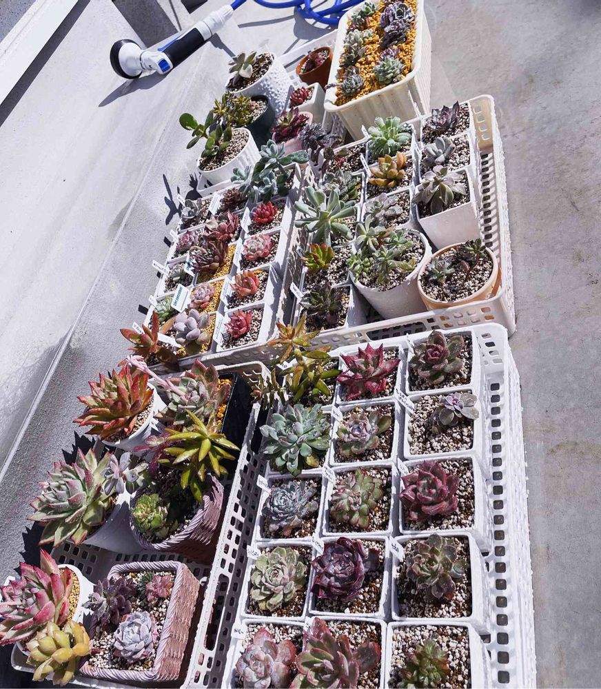 GSのみなさんはじめまして😋多肉植物を育てて1年、かわいい多肉ちゃんがこーーんにも増えてしまいました🥰(まだまだ少ないと重々承知ですが、私からみればものすごく多いのです🤣🤣)育て方、増やし方などなどに関するアドバイスを頂けたら飛んで喜びます🥲よろしくお願いします😋