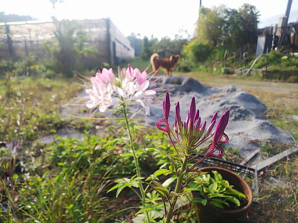クレオメは ハウス近辺でよく見かけます。ごまとかも、、