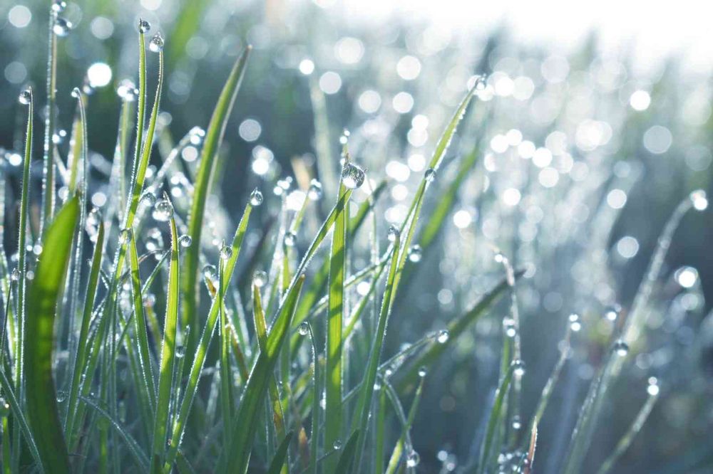 イネ科の雑草 朝露