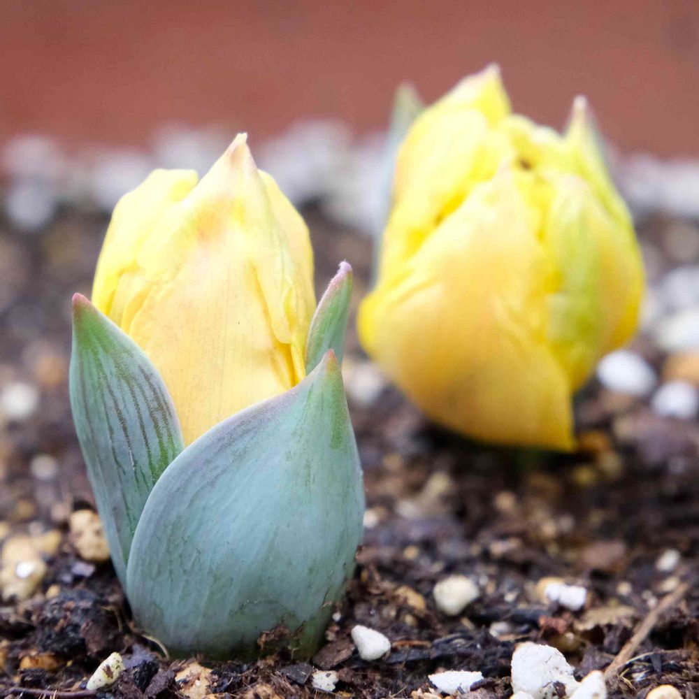 冬に球根を植えたミニチューリップ…