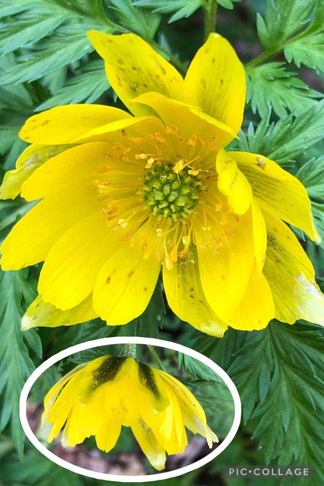 鮮やかな八重咲きっぽいフクジュソウと萼片😊
