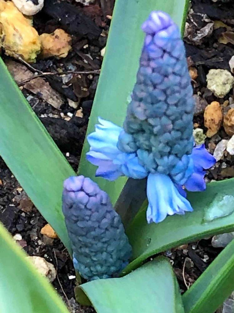 たまには明るい色のムスカリもいいですね💙