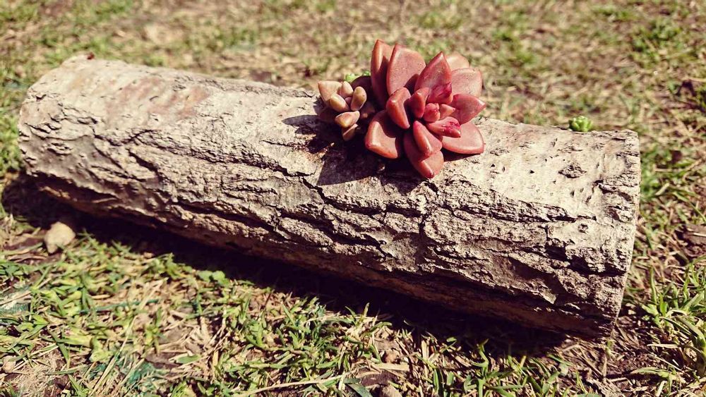 今日は 使わなくなったカブトムシの登り木に餌皿がついたやつに寄せ植えてみました