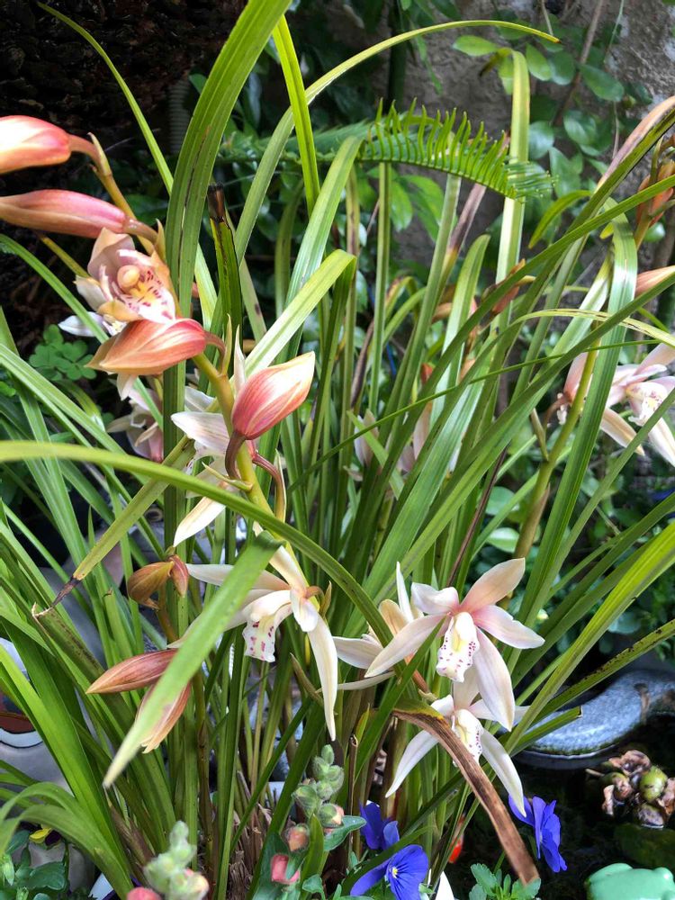 主に薔薇と蘭とハーブ🌿。後、多肉植物少々。屋上もありますが、水やりが大変で、今はベランダーです。