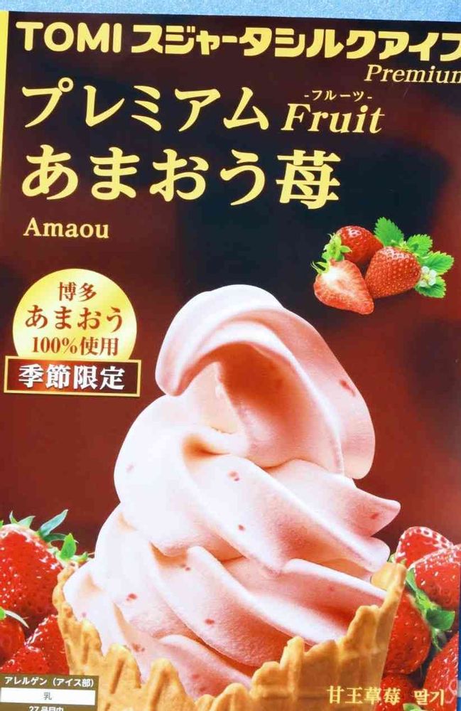 今朝の散歩道です。季節限定🍦、あまおう苺のソフトクリーム🍦、水元公園のお蕎麦屋さんの、看板立っていました。