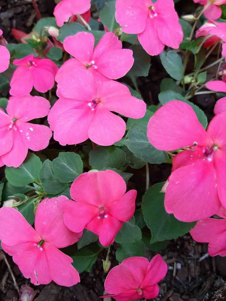 日本では冬越しできないから1年草扱いのインパチェンスですが、昨年は暖冬だったのか、ここでは冬越しできたようです。根が元気そうだったので抜き取らずそのまま置いていた株が見事に返り咲きです😊