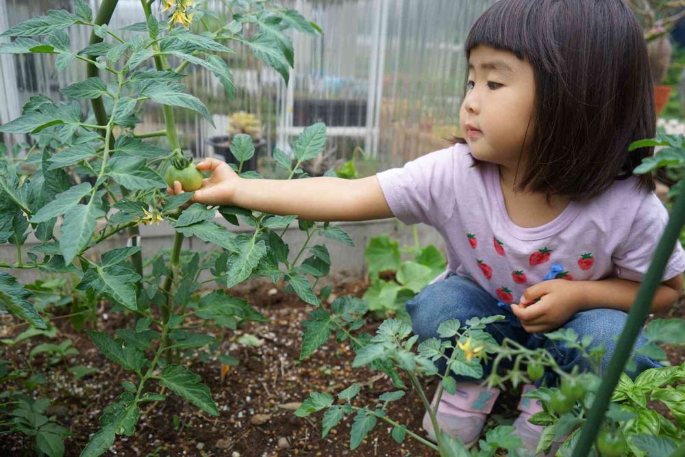 スーパーでは見ることができない青くて小さなトマトやキュウリに触れた時の驚いた顔を見て育ててみて良かったな、と思いました🍅