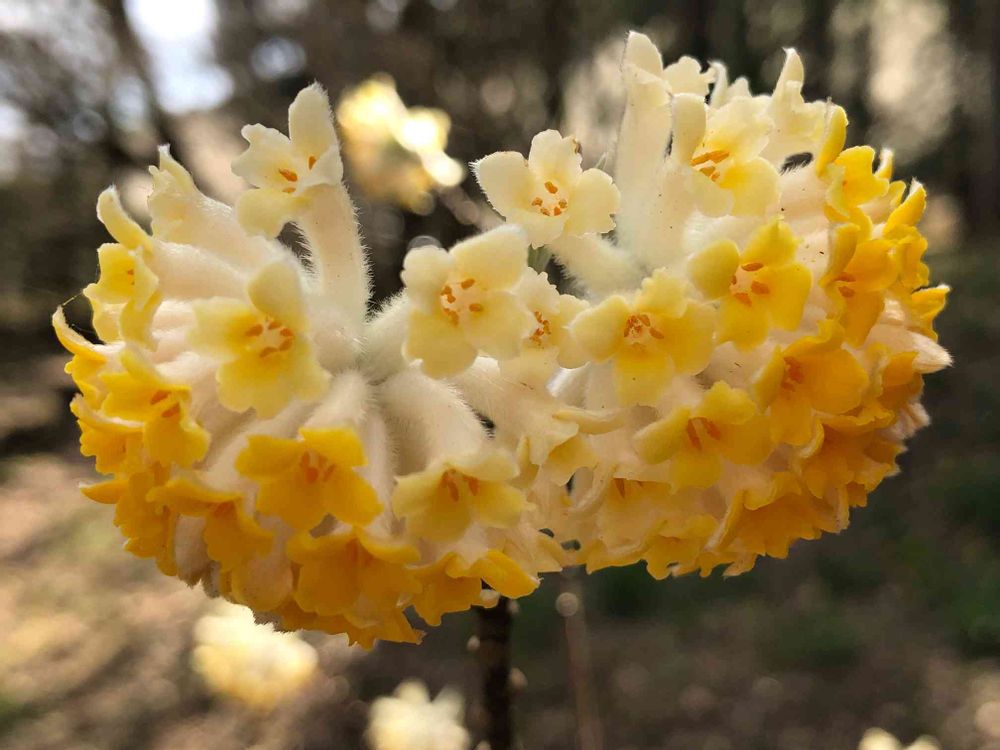 ミツマタの蕾、なかなか固かったですが、ようやく開きましたねえ😍