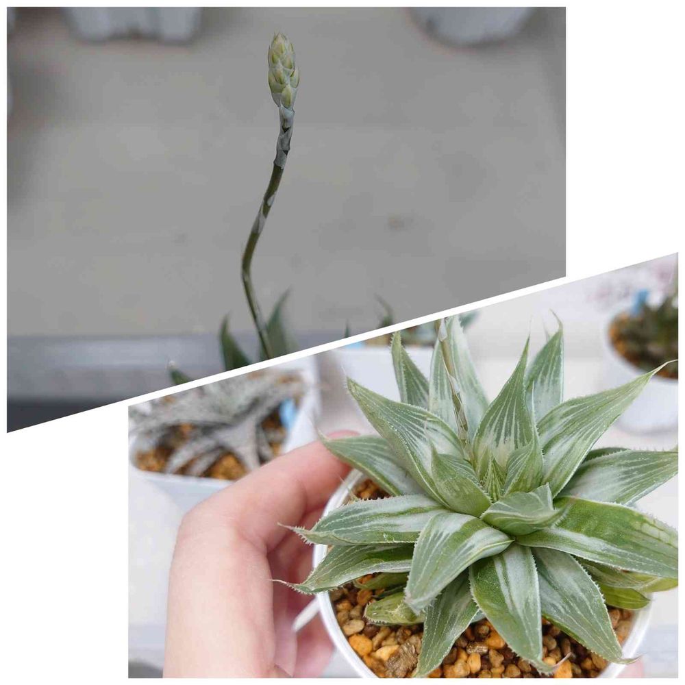 この子、うちにいる他のハオ達よりも花芽が長く、置き場の棚の天面にもう少しでつきそうです💦