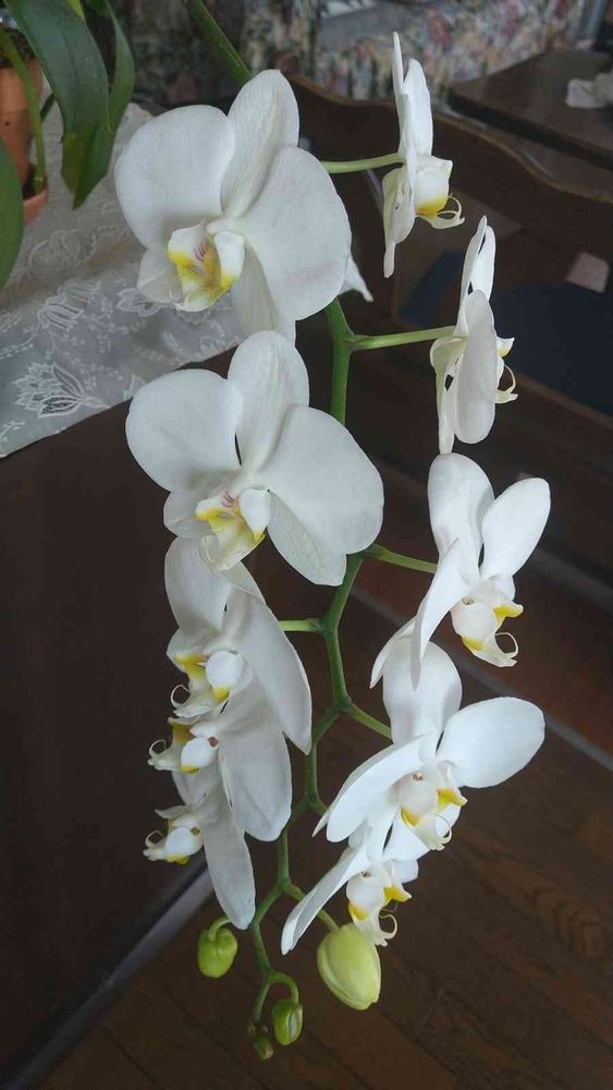 胡蝶蘭に使うワイヤーを、花に縛って 花瓶の中に重石を入れて上げると、立ってくれると思います。😅