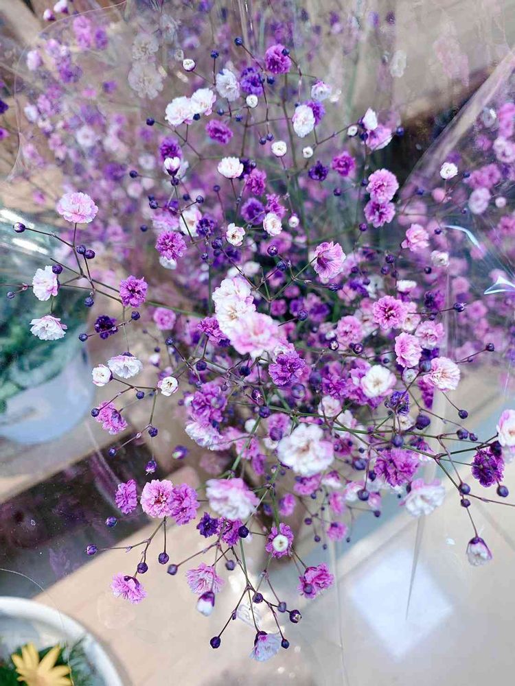 白いカスミソウも素敵ですが、ピンクと紫などの綺麗なカスミソウ 華やかでとても可愛いお花ですね。💓♥️❤️