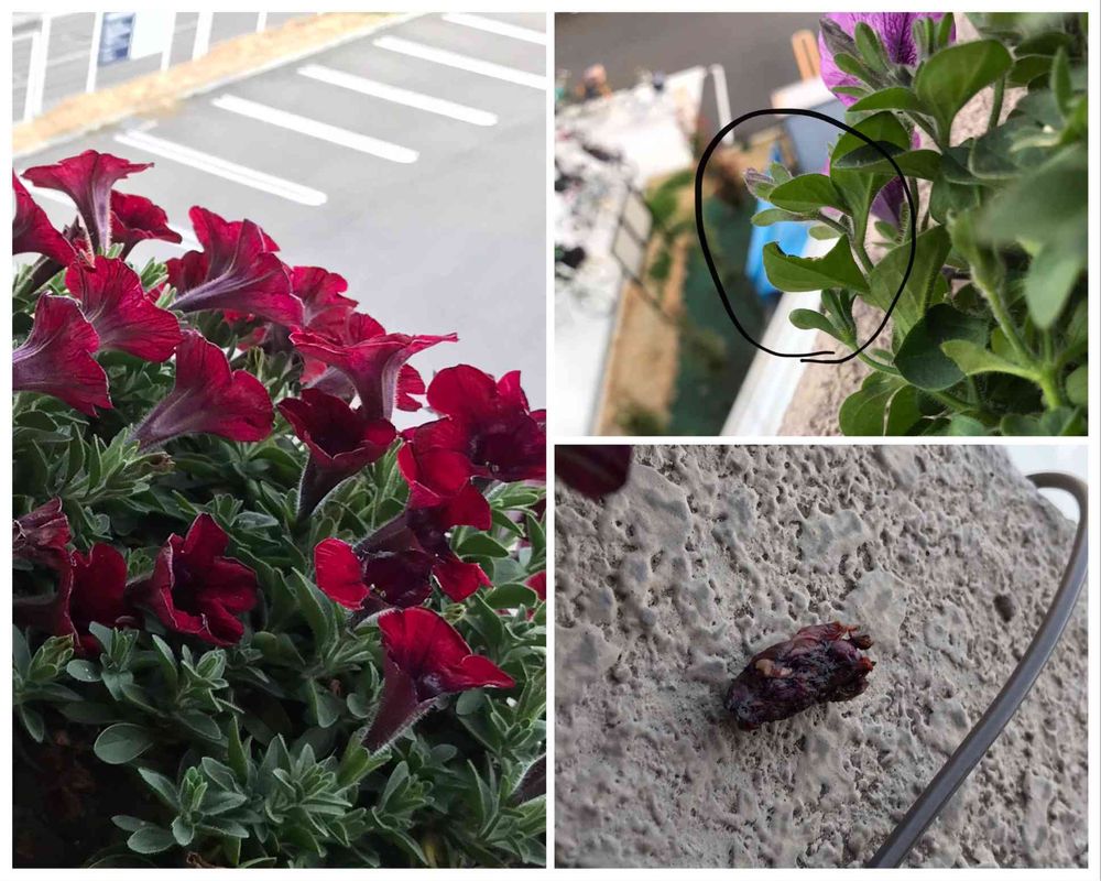 今日も花が食べられる被害。葉っぱも食べられてます。花びらを固めた大きな糞3つ発見しました。