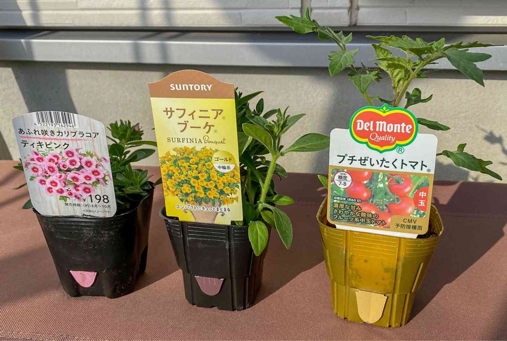 デルモンテ ぜいたくトマト,あふれ咲きカリブラコア ティキピンク,サフィニアブーケ ゴールドの投稿画像