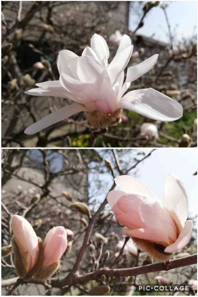 花びらがあつぼたくて大きいのは木蓮ですね。こぶしの花はやや小さめだから分かりやすいですよね😉本来なら、こぶしが一番咲きに咲いて🌸桜、木蓮、桃の順番ですが今は関係のないように咲いていますね。😅🌼💮🌸º°…。º°