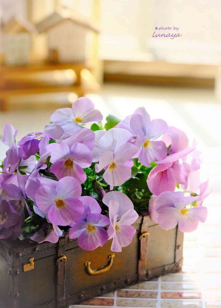 秋にお迎えしたビオラさんだけど どちらかと言うと 春向きの色かもしれませんね。😄 春の陽射しが似合う子でした。💗
