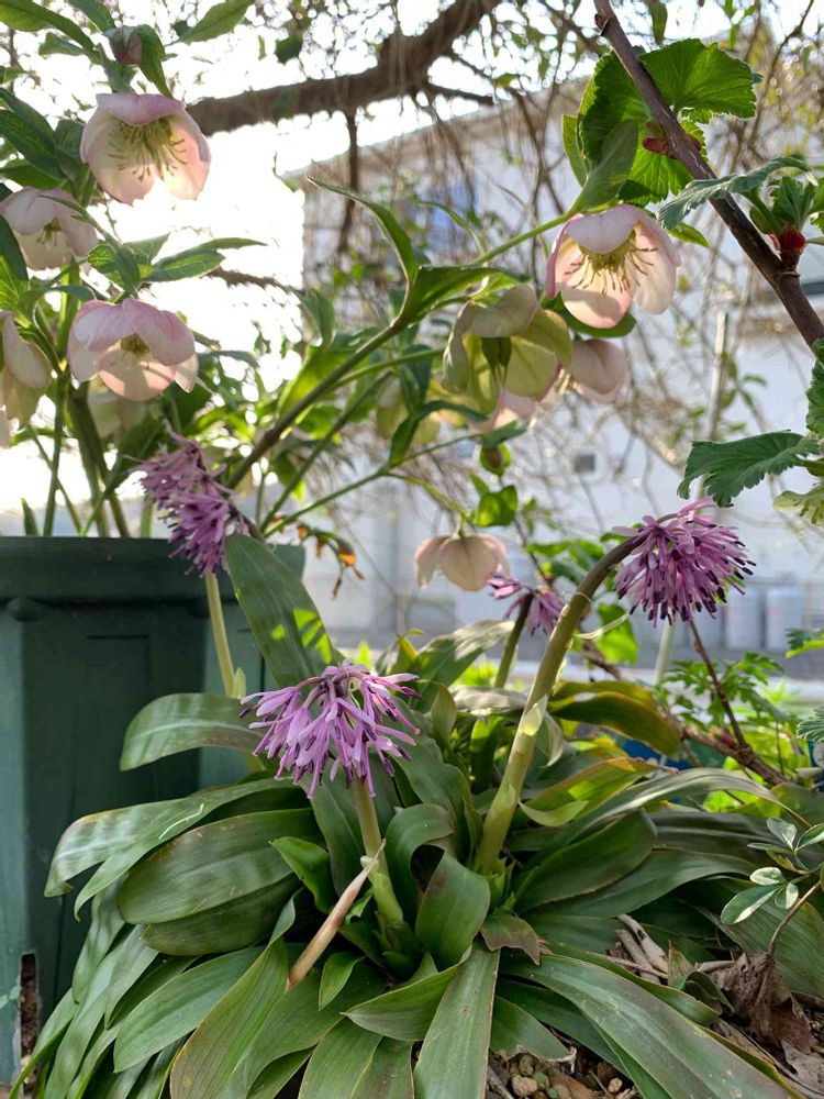 うす紫のショウジョウバカマとうすいピンクのカップ咲きクリスマスローズです☺️
