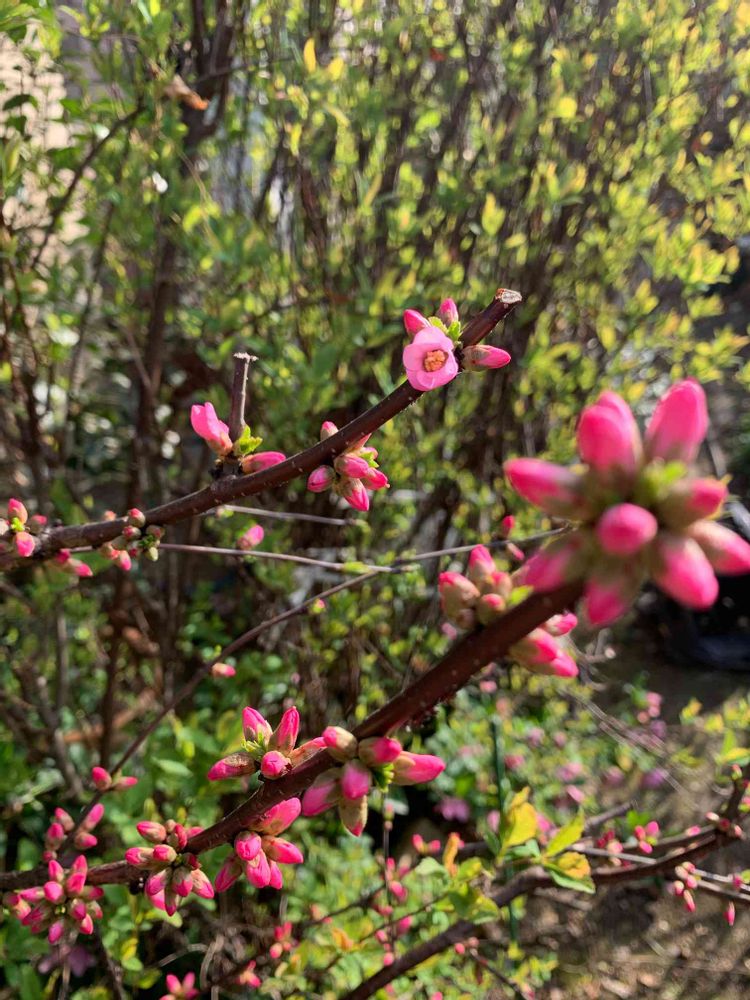 ユスラウメがたくさん花を🌸つけました☺️ピンクの濃いめの色がかわいいこと💕