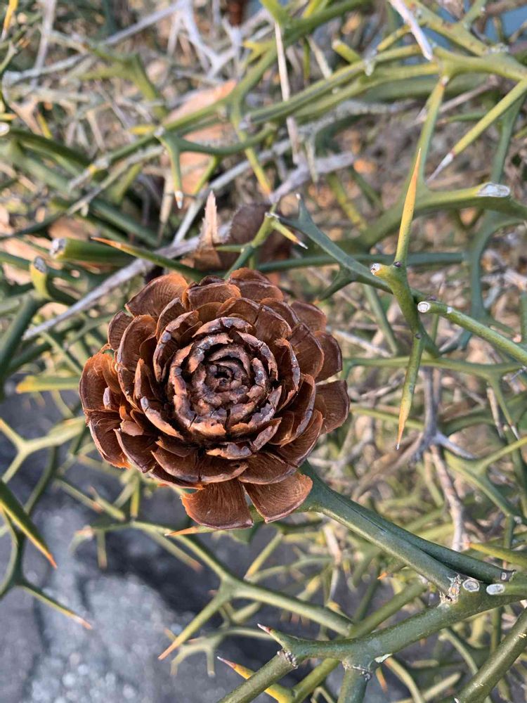 カラタチの木の上に落ちたら、松ぼっくりも引っかかるでしょう。😊