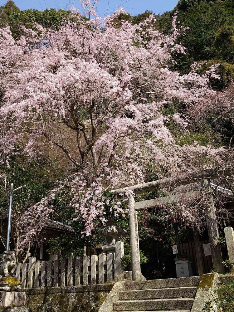 「哲学の道」からすぐの大豊神社(おおとよじんじゃ)では、🌸枝垂れ桜🌸が綺麗に咲いていました😍💖