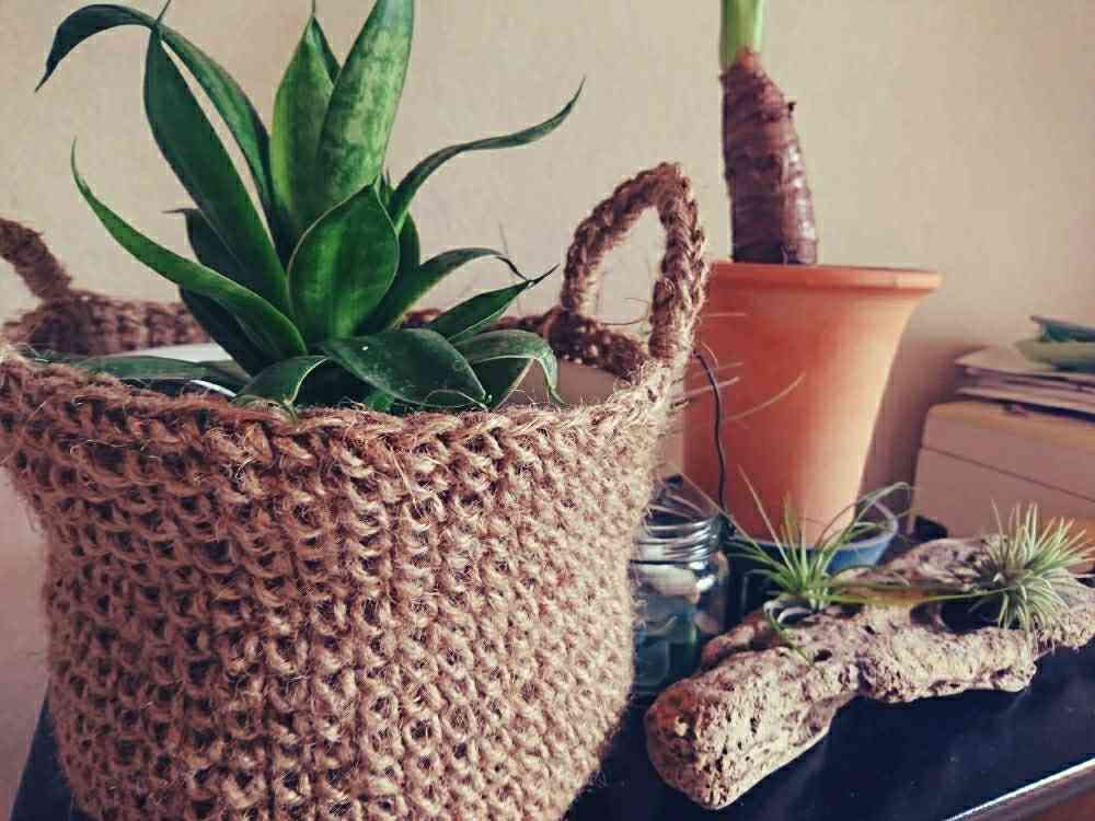 空いた時間にチャチャッと鉢カバー編んでみました。