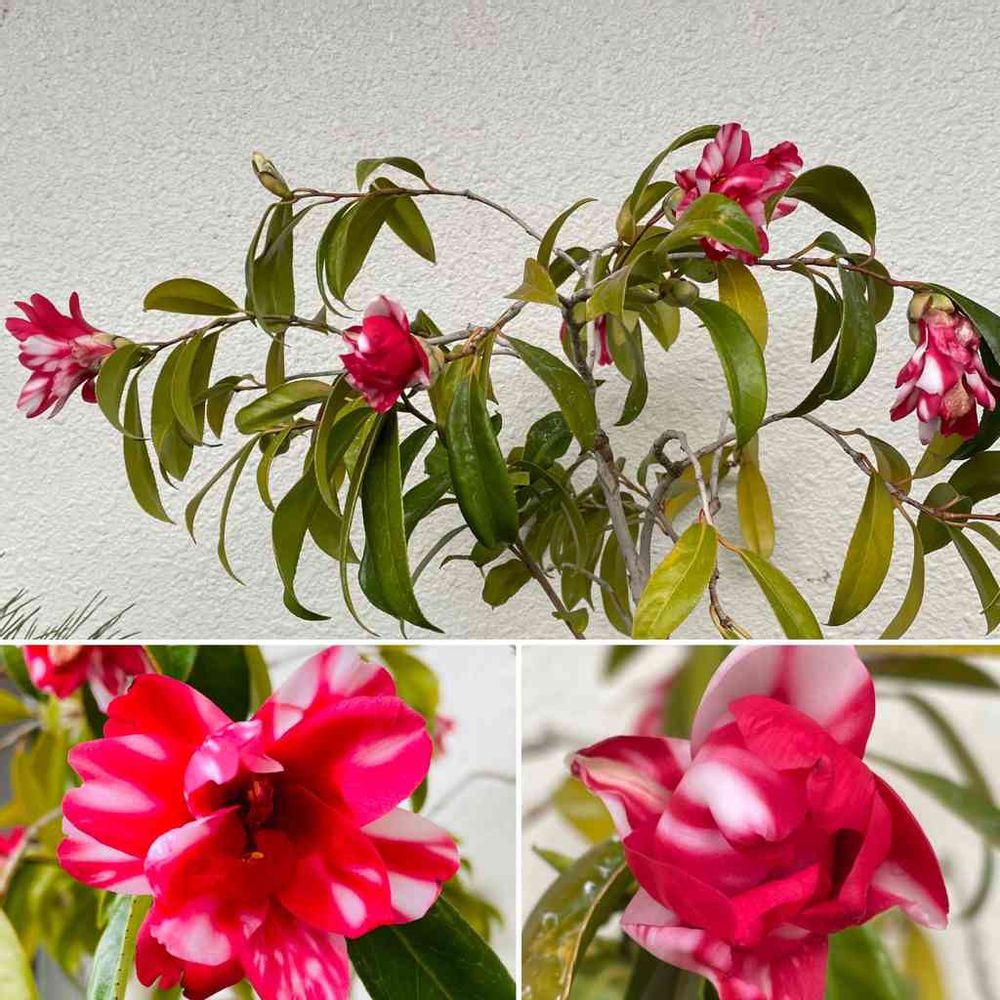 椿の落花はポトンと落ちますが、孔雀椿は花びらがパラパラと落花します。