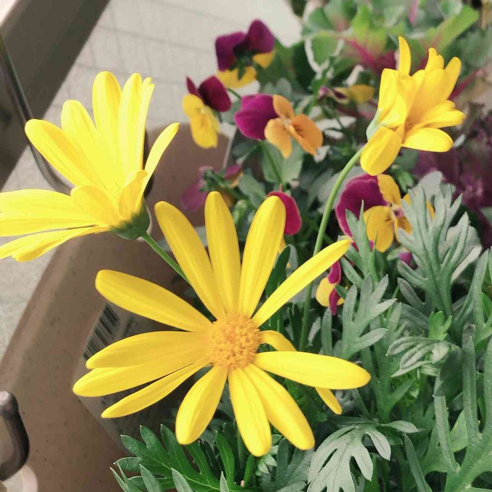 バルコニー/ベランダ,ユリオプスデージー,ビオラ パープルイエローの投稿画像