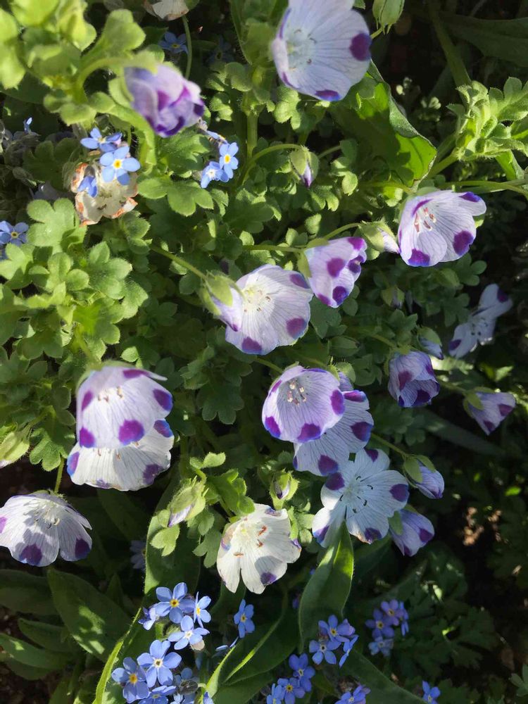 ネモフィラ、白い花びらにパープルブルーのドッドがとても可愛らしいですね(ᴗ̤ .̮ ᴗ̤ )₎₎ෆ