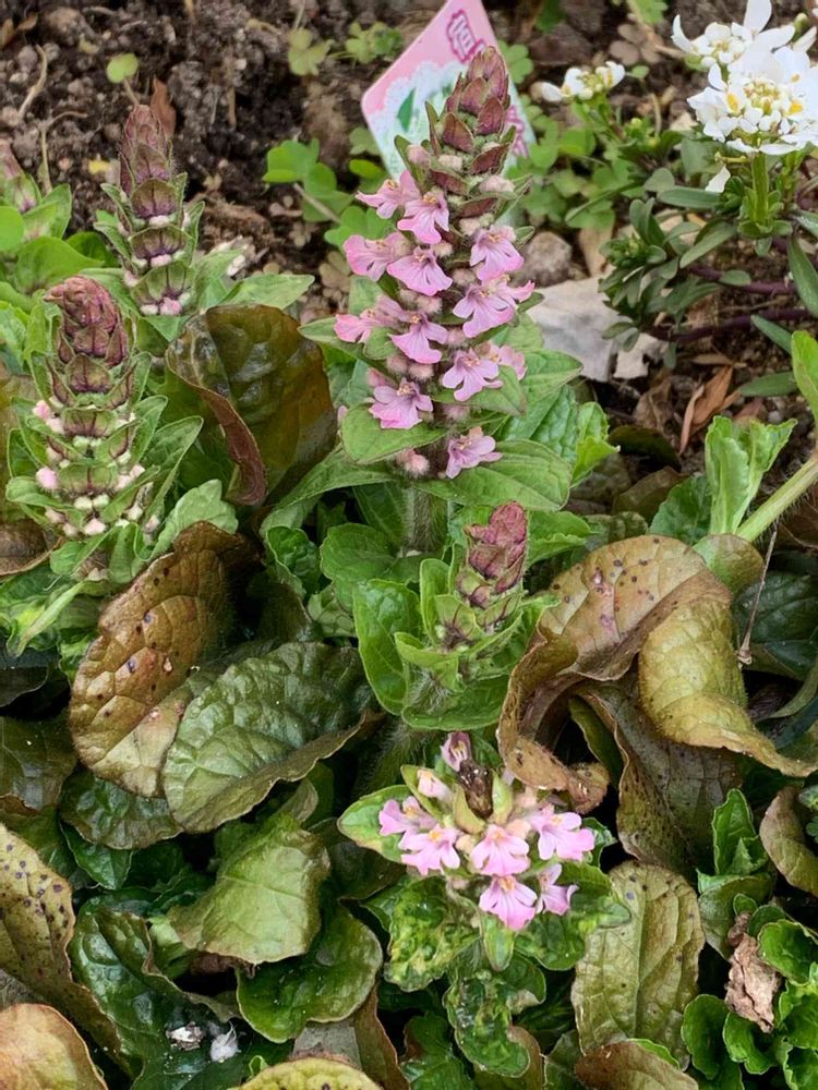 どうやらモザイク病が出でいるようなのでこの後、周辺のアジュガを一掃しました(T ^ T)ピンクの花のアジュガが全滅です。悲しい😭
