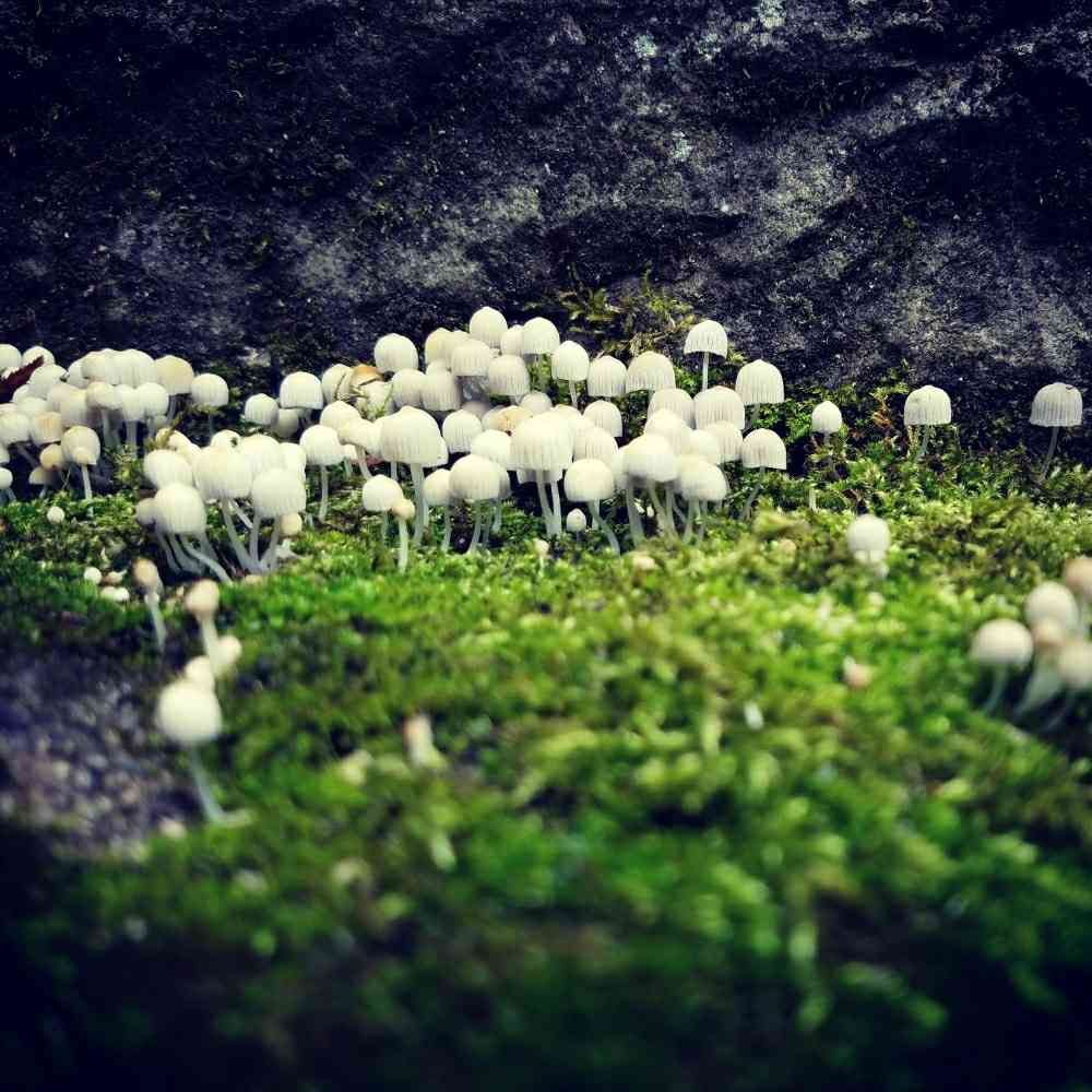 階段のところに苔と一緒にキノコがはえてましたよ。